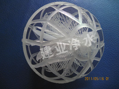 多孔球型懸浮(生物)填料,是在眾多污水處理填料的基礎上開發的新產品。主要起生物膜載體的作用,同時兼有截留懸浮物的作用,具有生物附著力強、比表面積大、孔隙率高、化學和生物穩定性好、經久耐用、不溶出有害物、不引起二次污染、防紫外線、抗老化、親水性能強等優點,是任何軟性、半軟性、組合、彈性填料無法實現的。